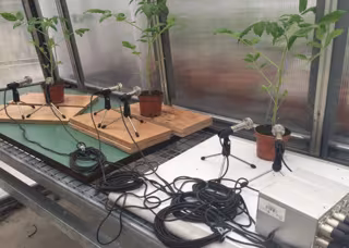 Los investigadores utilizaron micrófonos para grabar plantas sanas y estresadas de tomate y tabaco, primero en una cámara acústica insonorizada y luego en un invernadero más ruidoso. Sometieron a las plantas a estrés por dos métodos: no regándolas durante varios días y cortándoles los tallos.