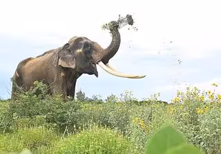 Un elefante come algunas plantas invasoras. Los elefantes u otros grandes herbívoros son un ejemplo de una solución natural que puede ayudar a resolver el problema. - WILDLIFE SOS—SURYODAY SINGH MANN