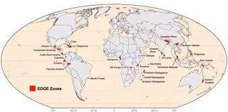 El estudio trazó un mapa de la distribución de casi 3.000 especies EDGE, identificando 25 zonas EDGE donde los esfuerzos de conservación pueden tener el mayor impacto.