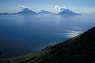 Investigadores de una variedad de instituciones y disciplinas han estado estudiando el Monte Cleveland, el volcán más activo del grupo, tratando de comprender la naturaleza de las Islas de las Cuatro Montañas. Han reunido múltiples pruebas que muestran que las islas podrían pertenecer a una caldera interconectada.