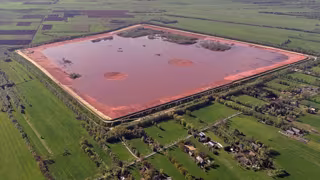 Lodo rojo residuo de la producción de aluminio acumulado en una balsa en Alemania - WIKIPEDIA