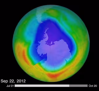 El agujero de ozono alcanzó su tamaño máximo el pasado 22 de septiembre, cubriendo 21,2 millones de kilómetros cuadrados, o el área de los Estados Unidos, Canadá y México juntos. El tamaño medio del agujero de ozono 2012 fue de 17,9 millones de kilómetros cuadrados. El 6 de septiembre de 2000 se registró el agujero de ozono más grande de la historia, con nada menos que 29.9 millones de kilómetros cuadrados.