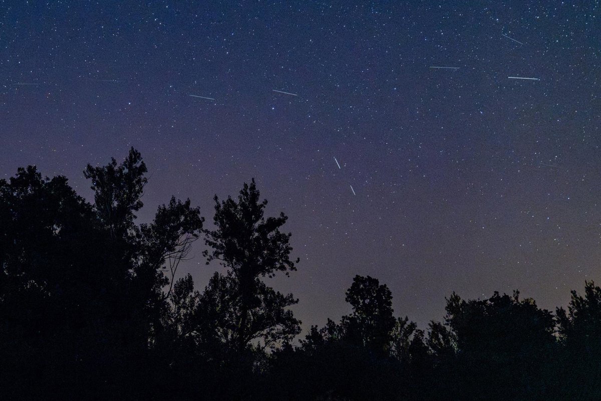 Archivo - 12 August 2024, Spain, Segovia: Meteors streak past stars in the night sky during the annual Perseid meteor shower above Santo Tome del Puerto. The Perseids are an annual prolific meteor shower occurring in July and August. Photo: Guillermo Guti - Guillermo Gutierrez Carrascal/SO / DPA - Archivo