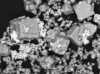 Microfotografía de microscopía electrónica de barrido que muestra micropartículas de oro (color brillante) depositadas con cristales de pirita de una solución hidrotermal en un experimento de laboratorio. - MARIA KOKH AND GLEB POKROVSKI