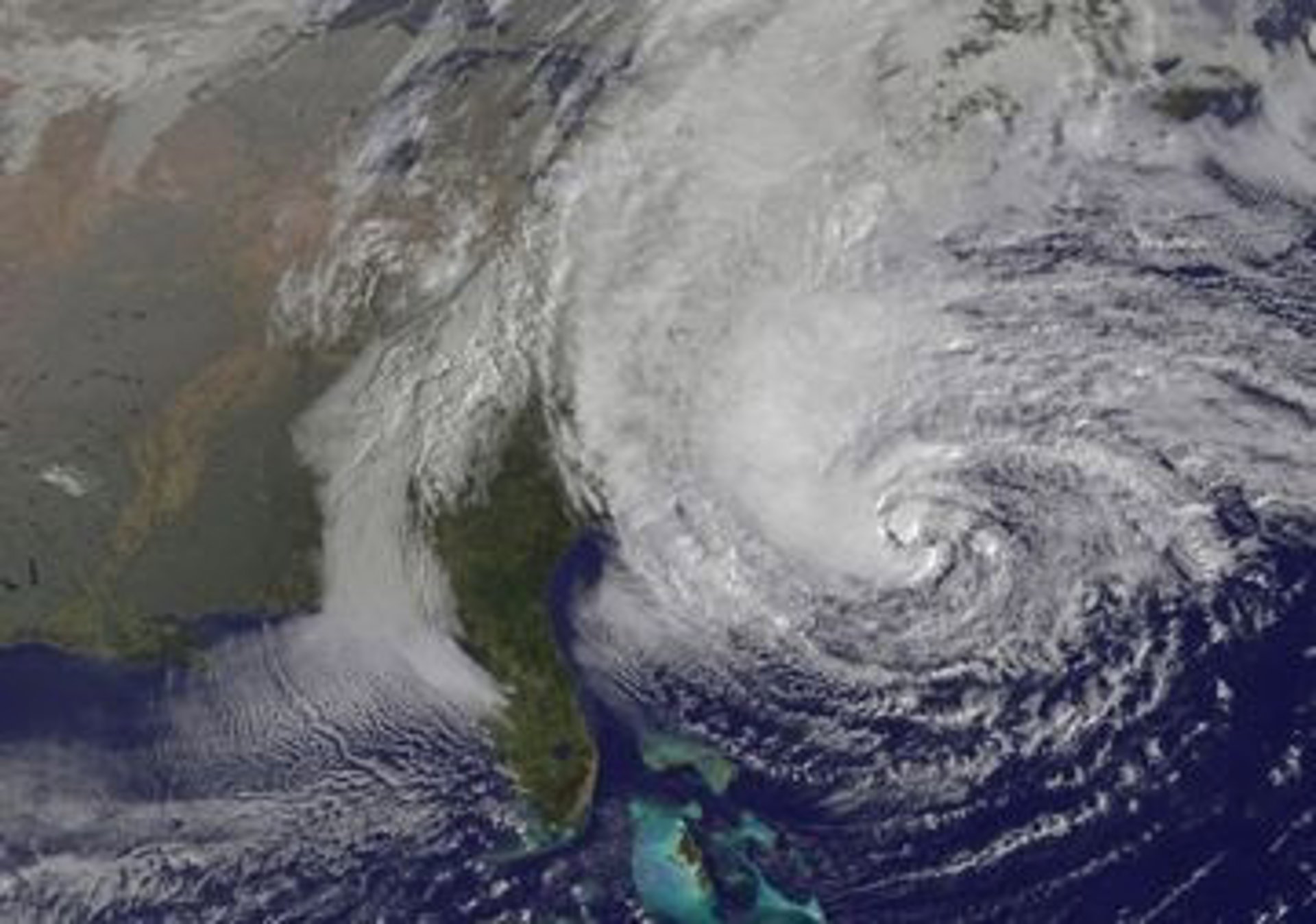 Su circulación convectiva es evidente sobre el Océano Atlántico a medida que Sandy se dirige hacia el norte, de forma que este huracán de origen tropical ha conseguido mantener la energía procedente del océano abriéndose camino ya en el Atlántico norte y se ha presentado a las puertas de Nueva Inglaterra, la costa nordeste de Estados Unidos, habitada por unos 60 millones de personas. Aire frío del norte y marea excepcionalmente alta por la luna llena han llevado a las autoridades a ordenar evacuaciones en ciudades como Nueva York.