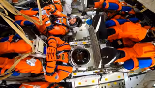 A las 13:15 hora local (19:15 hora española) se han colocado sus trajes espaciales --de color naranja brillante-- dentro de las instalaciones de la tripulación de astronautas del Edificio de Operaciones y Verificación Neil A. Armstrong con la ayuda de un equipo de técnicos. Al respecto, la NASA ha recordado que éstos incorporan "numerosas mejoras" con respecto a los utilizados en el transbordador espacial.