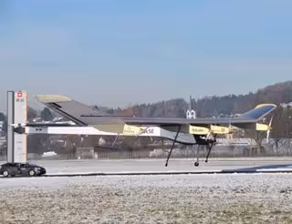 El aparato, pilotado por el experimentado aviador Markus Scherdel, despegó a las 8.28 GMT desde el aeródromo militar situado en las afueras de la ciudad de Payerne, en el cantón suizo de Vaud. Recorrió unos mil metros de pista a 45 kilómetros por hora. Voló cerca de una hora y media hasta alcanzar unos mil metros de altura acompañado por un helicóptero.