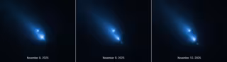 El Hubble tomó tres imágenes de 20 segundos, una por día, desde el 8 de noviembre hasta el 10 de noviembre de 2025. Mientras observaba el cometa, uno de los fragmentos más pequeños de K1 también se desintegró.
