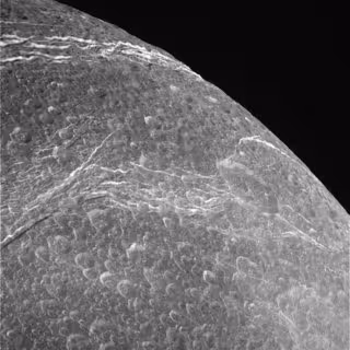 En su crucero del pasado fin de semana sobre la luna de Saturno Dione, la sonda de la NASA Cassini obtuvo su mejor visión hasta ahora de la región polar norte de esta pequeña luna helada, enviando a la Tierra imágenes de una superficie fracturada y llena de cráteres.