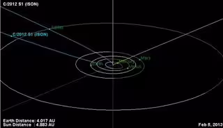 La nave Deep Impact de la NASA capturó esta imagen en movimiento del cometa c/2012 S1 (ISON) viajando a gran velocidad por el espacio, a nada menos que 793 millones de kilómetros de la Tierra.