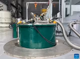 Esta fotografía tomada el 28 de septiembre de 2025 muestra el imán superconductor desarrollado por el Instituto de Física del Plasma de la Academia de Ciencias de China (ASIPP) en Hefei, provincia de Anhui, al este de China. - XINHUA