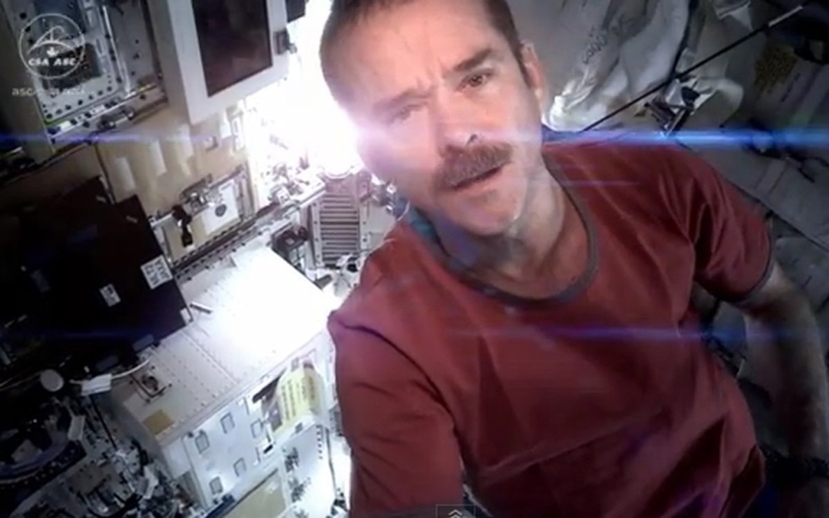 El astronauta canadiense ha sido muy activo en las redes sociales durante su estancia en el módulo espacial. Hadfield ha publicado continuamente fotografías de la Tierra en Twitter y sus videos en Youtube explicando por qué no se debe llorar en el espacio, cómo se lavan los dientes o se afeitan los astronautas y explicando lo que hacen en su día a día en la ISS, han sido vistos por cientos de miles de personas.
