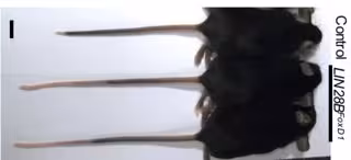 "Estábamos tratando de hacer modelos de ratones con el gen que predispone al cáncer Lin28, pero nos sorprendió descubrir que estos ratones tenían colas superlargas. Tenían más vértebras", dice George Daley, investigador y decano de la Escuela de Medicina de Harvard y autor principal del otro artículo. Su equipo estaba estudiando la vía Lin28/let-7, que regula el tiempo de desarrollo y se ha implicado en varios tipos de cáncer.