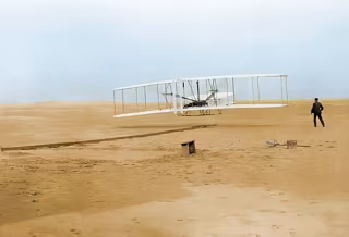 Aquella gesta de finales de 1903, que dió paso a la era de la aviación, elevó el aparato unos 40 metros durante 12 segundos en Kitty Hawk, Carolina del Norte. El gran aporte al vuelo de los Wright fue el control de viaje mediante el balanceo. Hasta entonces los aviones existentes tenían diseños que los hacían difíciles de controlar por no haberse considerado la necesidad de inclinar las alas para cambiar de dirección, informa Wikipedia.