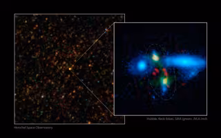 Tras una meticulosa investigación, el equipo se dio cuenta de que en realidad estaban mirando dos galaxias masivas fusionándose y las caracterizaciones de la pareja en colisión revelaron que estaban generando el equivalente a 2.000 soles al año y que el número total de estrellas de los dos cuerpos observados es de unos 400.000 millones de soles. Por comparación, la Vía Láctea 'incuba' entre dos y tres soles al año.