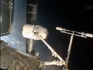 La cápsula espacial fue capturada a las 13.22 horas (hora peninsular) de este miércoles por los astronautas de la estación utilizando un brazo robótico, tal y como estaba previsto por la NASA.