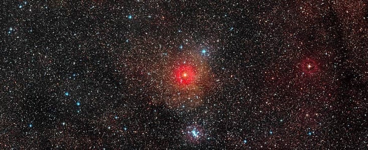 Este objeto celeste se encuentra a 12.000 años luz de la Tierra, a pesar de lo cual se puede ver casi a simple vista, debido a su tamaño. Es parte de un sistema estelar doble, cuyo segundo componente está tan cerca que ambos pueden tocarse "y todo el sistema se asemeja a un cacahuete gigante", según ha explicado uno de los autores, Olivier Chesneau.