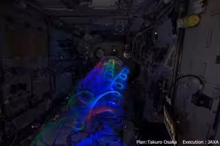 El astronauta japonés Kiochi Wakata ha creado un espectáculo de luz y color en la microgravedad de la Estación Espacial Internacional (ISS). Este efecto se ha logrado con un equipo especializado de la Agencia Japonesa de Exploración Aeroespacial (JAXA) que, mediante luces LED, crea senderos de luz que se pueden capturar en fotos.