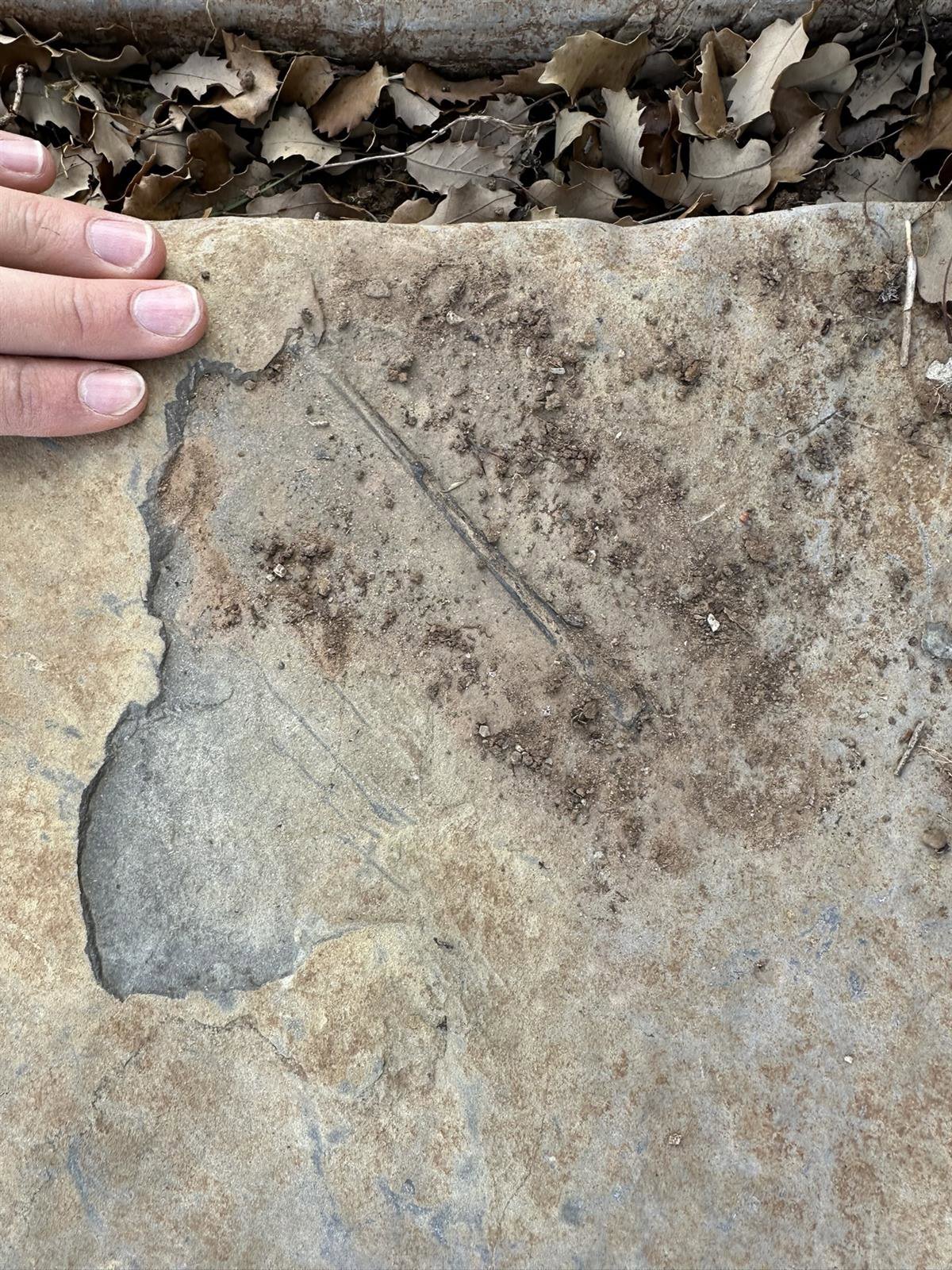 Falange alar de pterosaurio en el momento de su descubrimiento en el yacimiento 'El Pozo' (Teruel, España). - CONJUNTO PALEONTOLÓGICO DE TERUEL-DINÓPOLIS