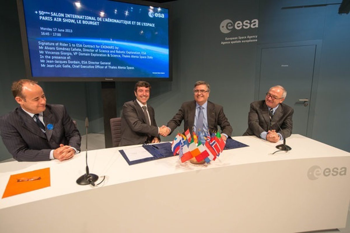 La misión ExoMars de la Agencia Espacial Europea (ESA), en colaboración con la agencia espacial rusa Roscosmos, ha entrado en la última fase de construcción con la firma de un contrato con Thales Alenia Space. El primer vuelo de este proyecto, que estudiará Marte de cara a la futura visita del hombre, está previsto para 2016.