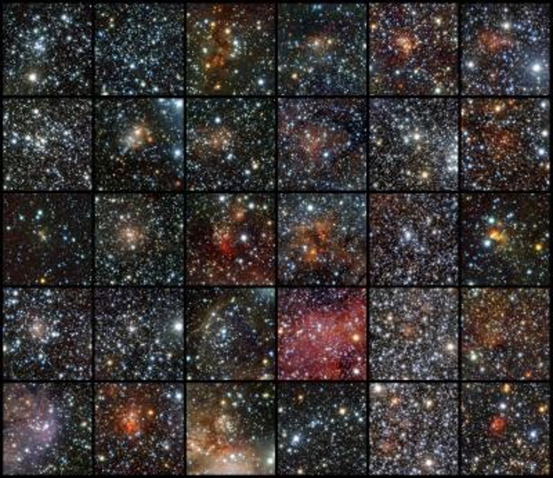 El telescopio infrarrojo VISTA del European Southern Observatory (ESO) - ha localizado nada menos que 96 cúmulos de estrellas ocultos detrás del polvo estelar. Este telescopio de rastreo infrarrojo está dedicado a profundizar en las regiones de formación estelar en nuestra galaxia, la Vía Láctea.