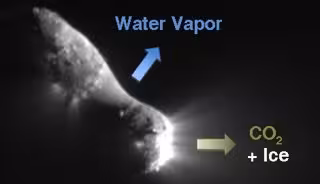 "El hecho de que todos los gases varían juntos es un poco desconcertante, porque EPOXI encontró una gran variación en la emisión de dióxido de carbono en relación con el agua", dice el jefe del equipo científico de EPOXI, Michael A'Hearn de la Universidad de Maryland.