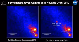 El observatorio Fermi Gammaray Space Telescope de la NASA captó el pasado mes de marzo una potente explosión nova en una estrella binaria de tipo simbiótico situada a 9.000 años luz de la Tierra, la primera vez que se detecta en una nova la emisión de rayos gamma (una forma de radiación electromagnética con una energía extremadamente elevada).