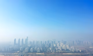 Archivo - 11 March 2025, South Korea, Incheon: The international business district of Songdo in Incheon is shrouded in haze as PM2.5 levels, referring to harmful particles smaller than 2.5 microns in diameter, are forecast to remain "bad" in the region. T - -/yonhap/dpa - Archivo