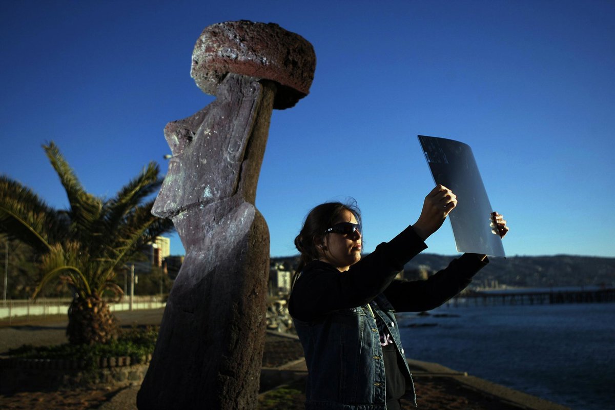 "Me parece espectacular conocer la isla, sus Moai y ver el eclipse además es inimaginable", dijo Guido Valenzuela, un chileno de 43 años que viajaba por primera vez a Pascua para ver el fenómeno.