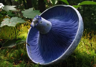 El color azul del hongo Lactarius indigo se debe al estearato de (7-isopropenil-4-metilazulen-1-il)metilo derivado del azuleno. - DAN MOLTER/WIKIPEDIA