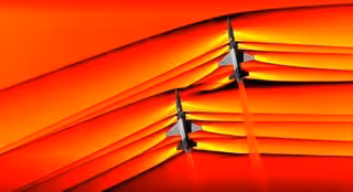 Las imágenes muestran un par de T-38 de la Escuela de pilotos de pruebas de la Fuerza Aérea de los Estados Unidos en la Base de la Fuerza Aérea de Edwards, que vuelan en formación a velocidades supersónicas. Los T-38 vuelan a una distancia aproximada de 10 metros uno del otro, con uno 3 metros más bajo que el otro. Con una claridad excepcional, se ve el flujo de las ondas de choque de ambos aviones, y por primera vez, la interacción de los choques se puede ver en vuelo.
