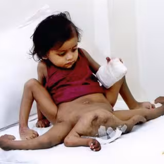 Poco más de un mes ha transcurrido desde que al menos 30 doctores operaran a la pequeña Lakshmi para extirparla dos brazos y dos piernas adicionales. La niña hace "progresos notables", según el cirujano jefe doctor Sharan Patil.