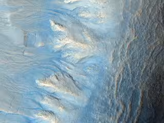 Seiscientas observaciones recientes del paisaje de Marte mediante una cámara telescópica órbital incluyen escenas de barrancos sinuosos, crestas geométricas y escarpados acantilados.