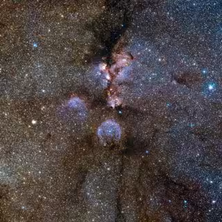 Esta región, que se sitúa cerca del corazón de la Vía Láctea, está compuesta por gas y polvo y de ella han nacido numerosas estrellas casi diez veces más masivas que el Sol. Además, cubre un área del cielo ligeramente más grande que la Luna llena.