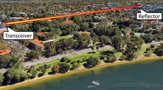 El equipo de la UWA disparó un rayo láser desde una ventana del quinto piso horizontalmente a lo largo de 1,2 km hasta un reflector, que lo envió de regreso a un receptor cerca de la fuente. La turbulencia experimentada por el haz a lo largo de 2,4 km fue equivalente a la turbulencia esperada tierra-satélite durante cientos de kilómetros, dice Gozzard, porque el aire cerca del suelo es más denso y más turbulento que en la atmósfera superior.