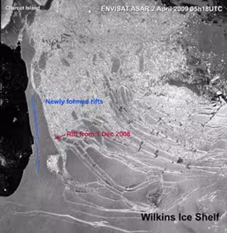El estudio encontró que cada uno de los eventos de la ruptura de la Plataforma de hielo Wilikins en 2008 coincidió con la estimada de llegada de las ondas infragravedad. Los autores señalan que esas ondas pueden afectar a la estabilidad de la plataforma de hielo por la apertura de grietas, la reducción de la integridad de hielo a través de la fractura y el inicio de un colapso.