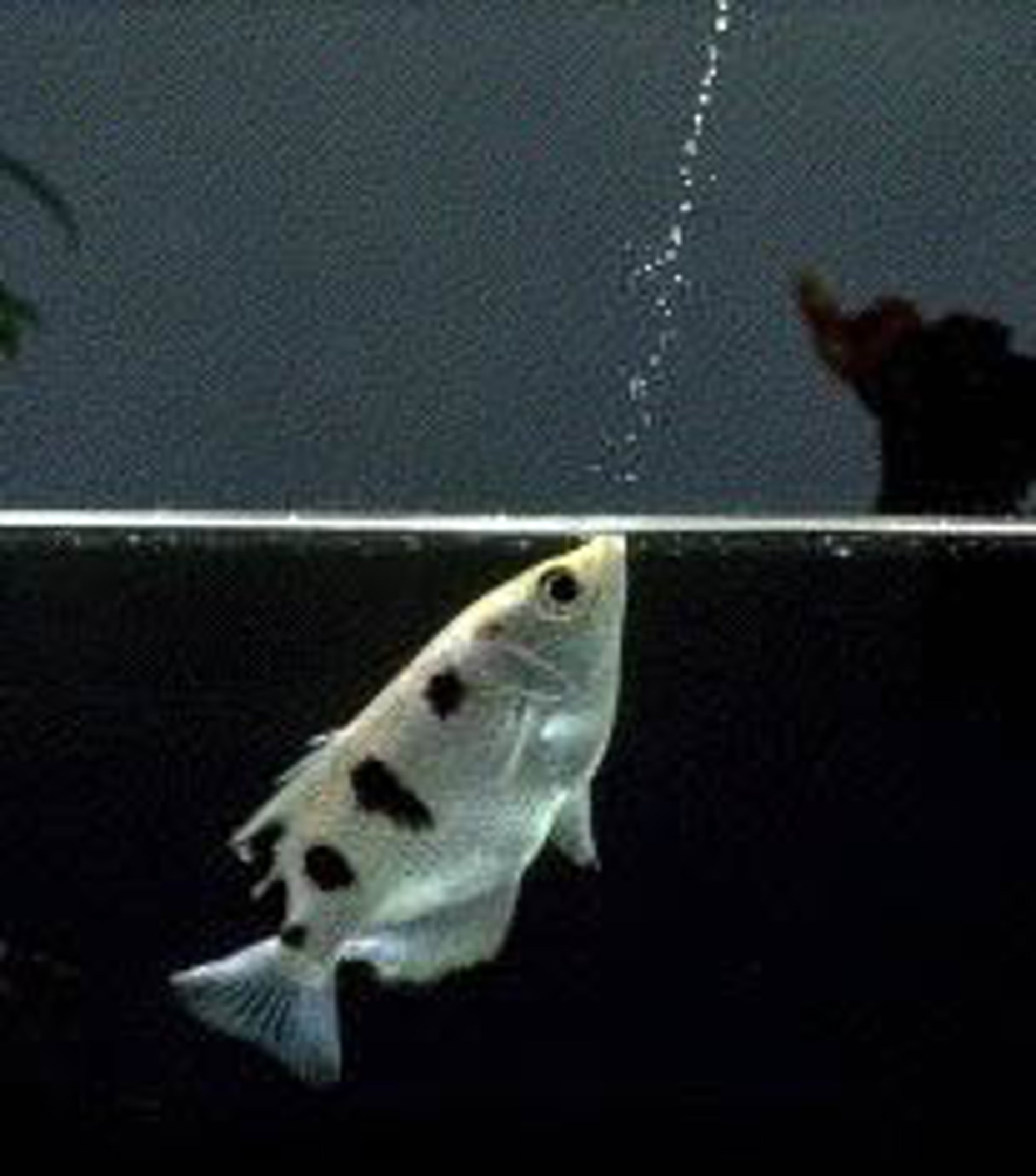 Los peces arquero son cazadores eficientes con una destacable habilidad para atrapar insectos lanzándoles un chorro de agua. Para determinar si el pez arquero muestra conductas de selección visual que se suelen asociar con la corteza visual de los mamíferos, los científicos entrenaron a cinco peces arquero para que lanzaran chorros de agua a imágenes de insectos en una pantalla LCD situada sobre el tanque.