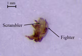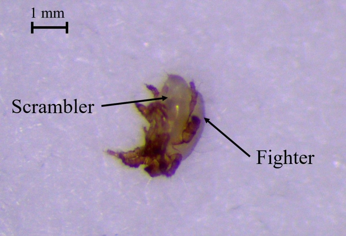 "Los luchadores machos pueden matar rápidamente a sus rivales y es más probable que lo hagan si estos no tienen parentesco genético. Al igual que en algunos insectos y arañas, este estudio observó una menor agresión hacia sus parientes y una mayor mortalidad entre los ácaros no emparentados con los machos luchadores, y una mayor intensidad en la agresión de los luchadores cuando hay hembras".
