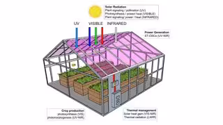 Debido a que las plantas no usan todas las longitudes de onda de la luz para la fotosíntesis, los investigadores han explorado la idea de crear células solares orgánicas semitransparentes que absorben principalmente longitudes de onda de luz de las que las plantas no dependen, e incorporar esas células solares en invernaderos.