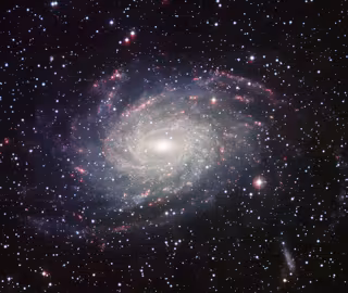 Con telescopios profesionales, tales como el telescopio MPG / ESO de 2,2 metros en La Silla, en Chile, que capturó esta imagen, NGC 6744 se puede ver en todo su esplendor. Los brazos espirales de polvo son el hogar de muchas regiones de formación estelar que brillan intensamente (visto en rojo) y proporcionan semejanza con la Vía Láctea, informa el European Southern Observatory.