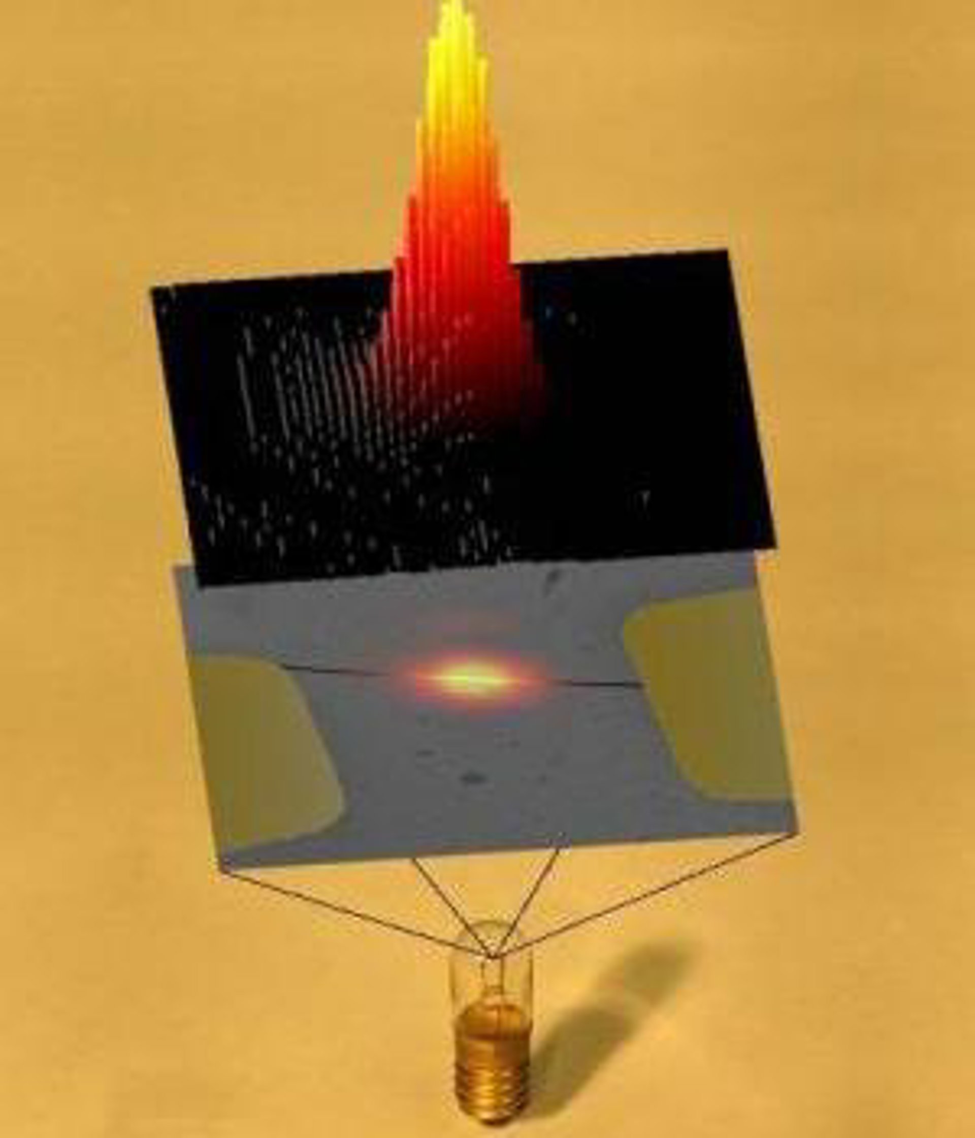 En un esfuerzo por explorar el límite entre la termodinámica y la mecánica cuántica --dos fundamentales pero aparentemente incompatibles teorías de la física-- un equipo del Departamento de Física y Astronomía de la Universidad de California en Los Angeles (UCLA) ha creado la lámpara incandescente más pequeña del mundo.