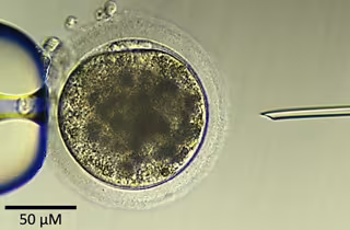 Un óvulo de burra inmediatamente antes de una inyección intracitoplasmática de espermatozoides - ANDRES GAMBINI.