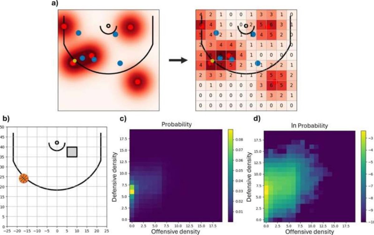 Un grupo dirigido por el profesor de Física Tomás Arias ha adaptado la teoría de fluctuación funcional de la densidad (DFFT) para predecir las posiciones de los jugadores y clasificarlos según sus contribuciones defensivas. También han intentado cuantificar la "gravedad del jugador": la fuerza con la que un jugador atrae a los defensores, lo que indica que representa una amenaza anotadora.