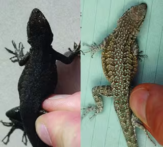 Las poblaciones de lagartijas dentro y fuera del flujo de lava tienen esta plasticidad que les permite cambiar de color cuando se mueven a un nuevo entorno. Pero las dos poblaciones también presentan diferencias hereditarias en la pigmentación. El análisis genético reveló diferencias entre las dos poblaciones en dos genes implicados en la regulación de la producción de melanina.
