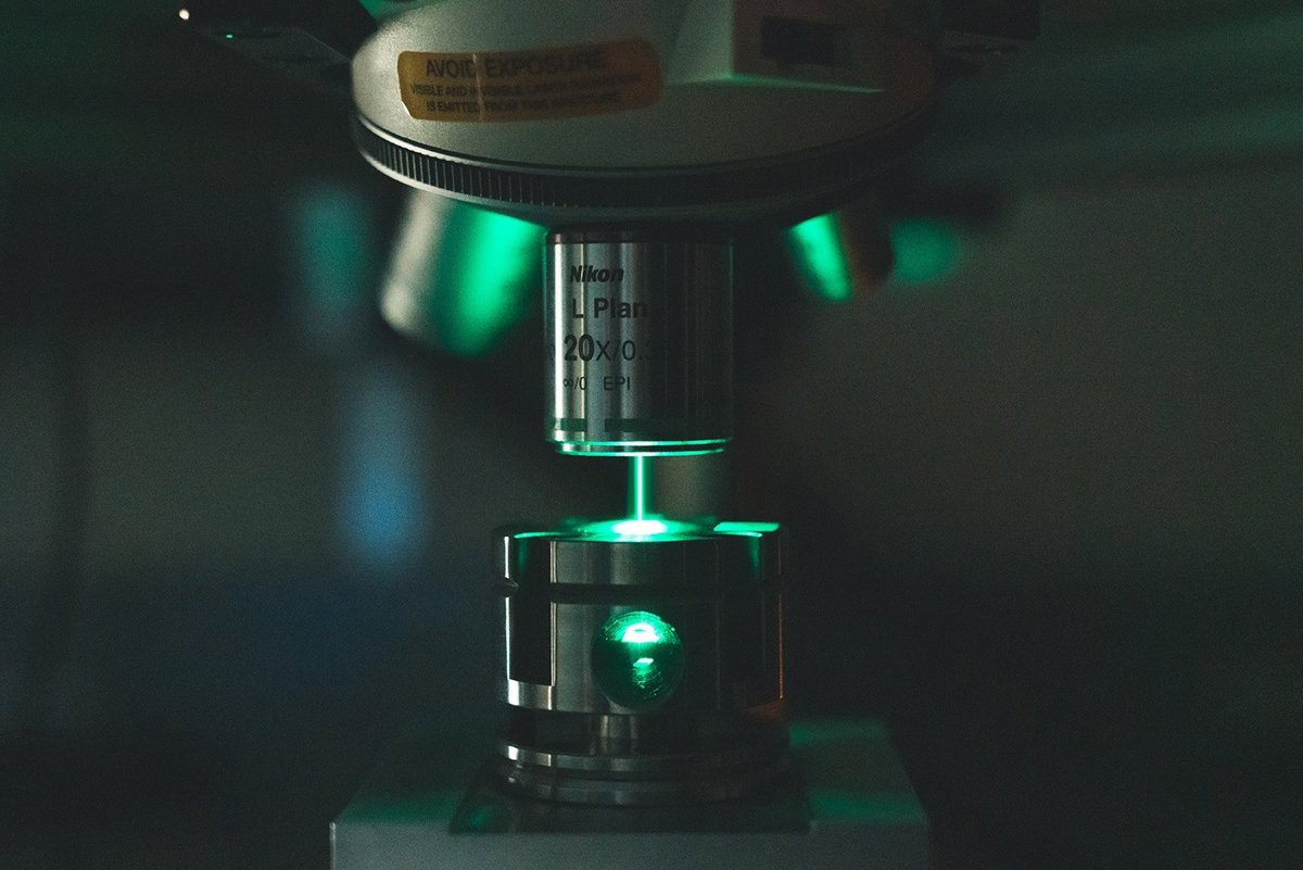 Después de exprimir muestras de diamondoides y detonarlas con un láser, los investigadores usaron un segundo rayo láser más frío para ayudar a caracterizar el diamante resultante - ANDREW BRODHEAD