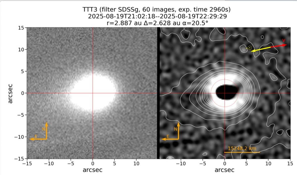 El Telescopio TTT en el Observatorio del Teide detecta el primer 'jet' periódico y oscilante en un cometa interestelar - IAC