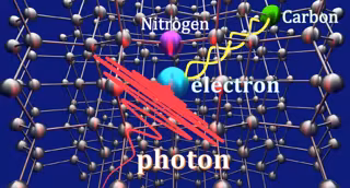 Kosaka luego usó el nanomagneto de nitrógeno para anclar un electrón. Usando el microondas y las ondas de radio, Kosaka forzó el espín del electrón para entrelazarse con un espín nuclear del carbono: el momento angular del electrón y el núcleo de un átomo de carbono. El espín del electrón se rompe bajo un campo magnético creado por el nanomagneto, lo que le permite volverse susceptible al entrelazamiento. Una vez que las dos piezas están entrelazadas, lo que significa que sus características físicas están tan entrelazadas que no se pueden describir individualmente, se aplica un fotón que contiene información cuántica y el electrón absorbe el fotón.