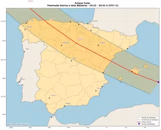 Según el portal, la zona de totalidad del eclipse atravesará una franja que irá del norte hacia el Mediterráneo, afectando al noreste peninsular en las últimas horas del día, pero las condiciones meteorológicas del verano representan un riesgo significativo para su visibilidad en gran parte del recorrido.