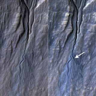 Ampliar imagen MADRID, 11 Jul. (EUROPA PRESS) - Los barrancos de la superficie de Marte se forman principalmente por la congelación estacional de dióxido de carbono -hielo seco-, y no por el agua líquida. Esta es la conclusión de observaciones repetidas de alta resolución realizadas por el Orbitador de Reconocimiento de Marte de la NASA (MRO). Los primeros informes de los barrancos de formación en Marte en 2000 generaron entusiasmo y titulares, ya que sugerían la presencia de agua líquida en el planeta rojo, con erosión en forma de barrancos como aquí en la Tierra. Marte tiene vapor de agua y un montón de agua congelada, pero la presencia de agua líquida en el planeta vecino, una necesidad para toda la vida conocida, no ha sido confirmada. Este último informe sobre los barrancos se ha publicado en Internet por la revista Icarus. "Hace tan sólo cinco años, pensé que los barrancos de Marte indicaban la actividad de agua líquida", dijo el autor Colin Dundas de Astrogeología Centro de Ciencias de los EE.UU. Geological Survey en Flagstaff, Arizona. "Hemos sido capaces de conseguir muchas más observaciones, y cuando empezamos a ver más actividad y precisar el momento de la formación de cárcavas y el cambio, hemos visto que la actividad se produce en invierno." Dundas y sus colaboradores utilizaron la cámara de alta resolución HiRISE para examinar barrancos en 356 sitios en Marte, a partir de 2006. Treinta y ocho de los sitios mostraron la formación de cárcavas activas, con nuevos segmentos de canal y el aumento de los depósitos en el final cuesta abajo de algunos barrancos, informa la NASA. Usando fechadas antes y el después de las imágenes, los investigadores determinaron el calendario de esta actividad, que coincidió con la escarcha del dióxido de carbono y temperaturas que no habrían permitido el agua líquida. El dióxido de carbono congelado, comúnmente llamado hielo seco, no existe de forma natural en la Tierra, pero es abundante en Marte. Se ha relacionado con los procesos activos en Marte, como géiseres y las líneas en las dunas de arena aradas por bloques de hielo seco de gases de dióxido de carbono. Un mecanismo por el que el dióxido de carbono helado podría producir barrancos es por gas que es sublimando de la escarcha proporcionando lubricación para que el material seco fluya. Otro puede ser toboganes debido al peso de la acumulación estacional de escarcha en las laderas escarpadas.Las conclusiones de este último informe sugieren que todos los barrancos vistos en Marte puede ser atribuidos a los procesos actualmente en curso, mientras que las hipótesis anteriores sugirieron que se formaron de miles a millones de años atrás, cuando las condiciones climáticas eran posiblemente conducentes al agua líquida en Marte. Aunque los hallazgos sobre barrancos apuntan a procesos que no implican el agua líquida, la posible acción de agua líquida en Marte ha sido reportada en el último año en otros hallazgos del equipo de HiRISE. Esas observaciones corresponden a un tipo más pequeño de flujo de superficie.