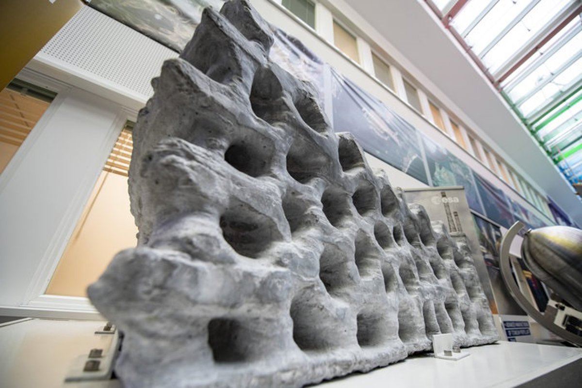 Este bloque de 1,5 toneladas ha sido imprimido en 3D a partir de polvo lunar simulado, para demostrar la viabilidad de construir una base lunar utilizando materiales locales de construcción.